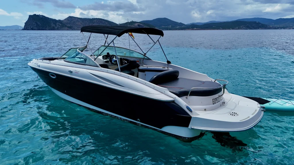 La Monterey 278 SS combina diseño deportivo y confort. Es una opción ideal para quienes buscan una embarcación con mayor comodidad interior y WC a bordo, perfecta para grupos que priorizan el confort.